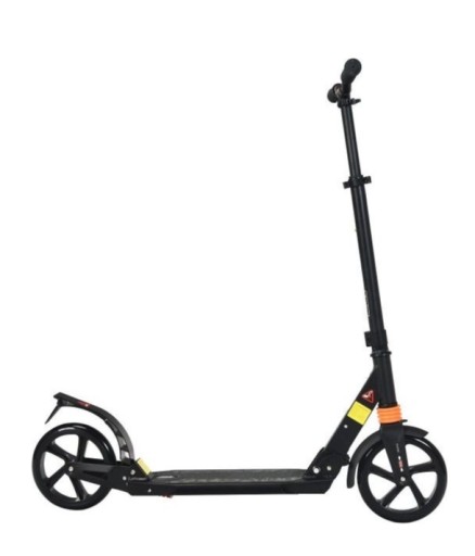 Hulajnoga przeznaczona jest dla dzieci powyżej 8 roku życia, nastolatków oraz dorosłych. Dzięki kierownicy z regulowaną wysokością, można ją dostosować do indywidualnego wzrostu. Amortyzatory redukują wstrząsy wynikające z jazdy po nierównym terenie, zapewniając komfortową jazdę. Koła z materiału PU o średnicy 20 cm przystosowane są do każdego rodzaju terenu. Szeroki podest z antypoślizgową powierzchnią gwarantuje bezpieczeństwo oraz stabilność. Tylny błotnik służy jako hamulec, a podpórka utrzymuje hulajnogę w pozycji pionowej gdy sprzęt nie jest używany. Ponadto dzięki składanej konstrukcji jest łatwa w przechowywaniu oraz transporcie.