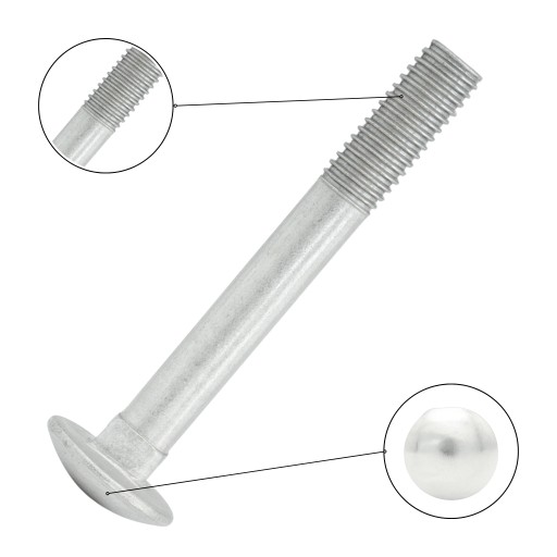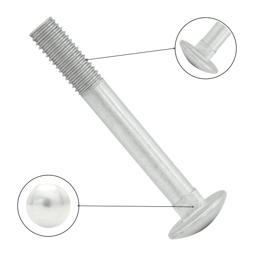 Śruba z łbem grzybkowym z podsadzeniem wykonana w standardzie DIN 603. Klasa wytrzymałości śruby 4.8. Wykonana z wysokiej jakości stali.