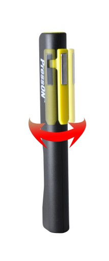 - Posiada magnes umożliwiający przymocowanie latarki np. do maski samochodu. Klips jest obrotowy dzięki czemu można doświetlić przestrzeń roboczą pod różnym kątem;