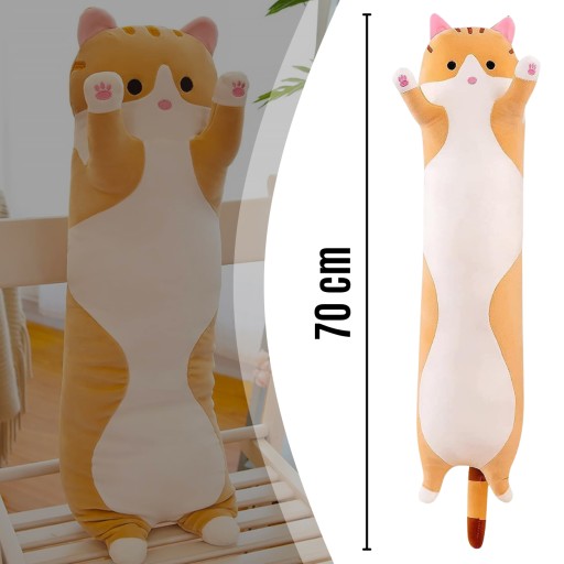 MASKOTKA PLUSZAK PODUSZKA ZABAWKA PRZYTULANKA DŁUGI KOT BRĄZOWY 70cm