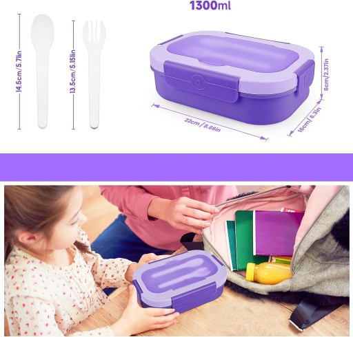🍱Pudełko na drugie śniadanie ma pojemność 1300 ml i jest wyposażone w 4 przegródki, w których można umieścić różne rodzaje żywności.