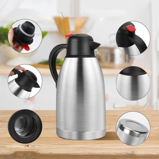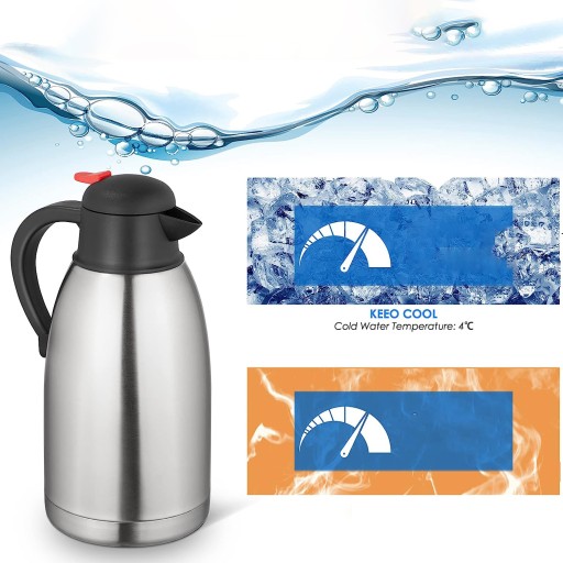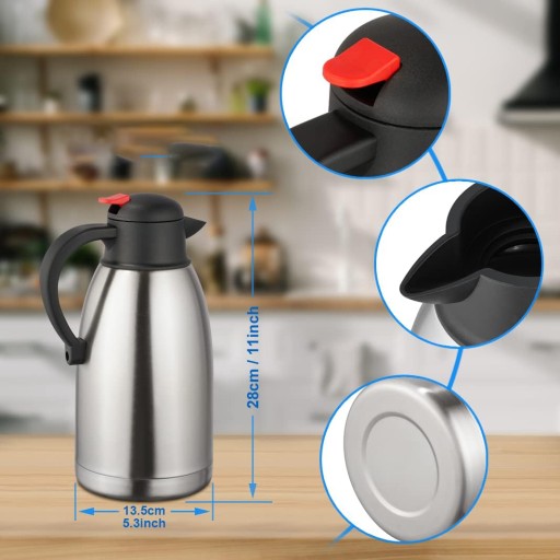 ⏳Ekspres do kawy o pojemności 2 litrów zapewniający ponad 12 godzin ogrzewania i ponad 24 godziny zimnej kawy, wyposażony w dwuścienną, izolowaną próżniowo konstrukcję ze stali nierdzewnej, która spowalnia przenoszenie ciepła. Dzięki temu napoje mogą pozostać ciepłe lub chłodne przez wiele godzin bez źródła ciepła lub chłodzenia.