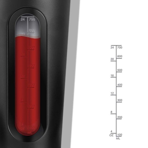 - Dzięki skali pojemności wygodnie jest obserwować pozostałą pojemność iw razie potrzeby można dodać wodę i białko/mleko.