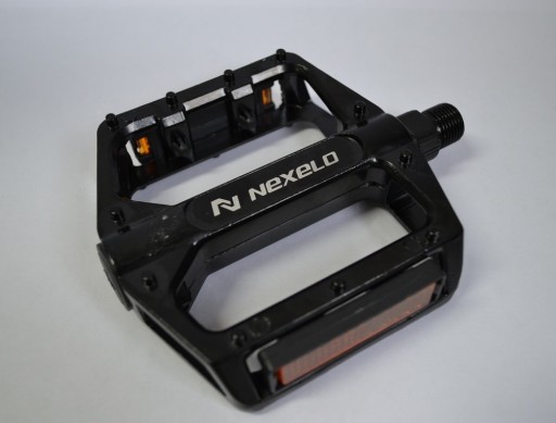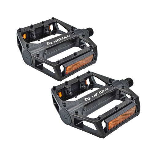 Pedały aluminiowe BMX/MTB, łożyska kulkowe, z odblaskami, wymiary 110 x 100 mm, oś stalowa 9/16 cala, kolor: czarny