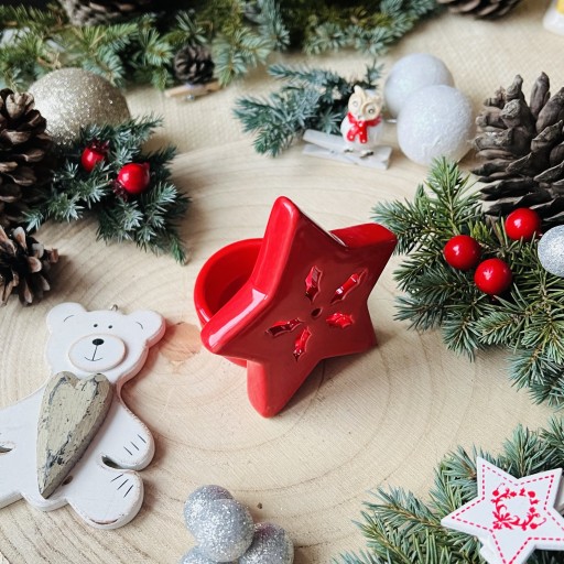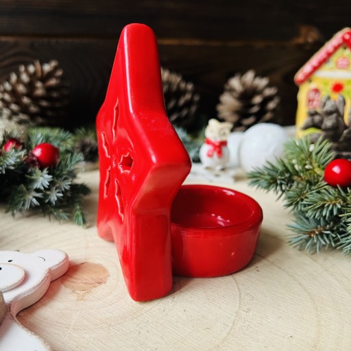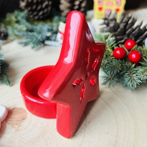 Świecznik Gwiazdka Bożonarodzeniowy Porcelanowy Czerwony PREZENT ŚWIĄTECZNY