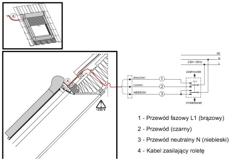 - Roleta ARZ Elektro 230 sterowana jest przełącznikiem ZKP lub ZKN