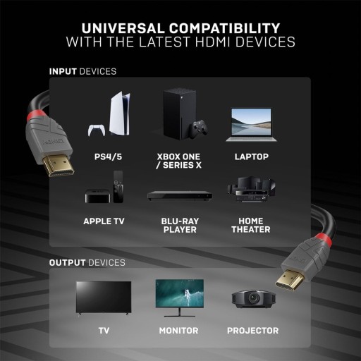 Kabel Lindy 36951 HDMI 2.1 Anthra Line to gwarancja niezawodnego połączenia w najnowocześniejszych instalacjach AV i IT.