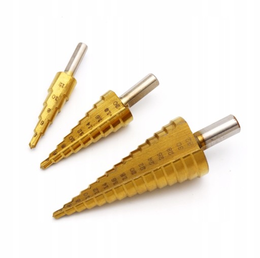 Zestaw wierteł stopniowych stożkowych, wykonane z wysokogatunkowej stali szybkotnącej HSS + TYTAN. Przeznaczone do metali , blach stalowych cienkościennych, tworzyw sztucznych.