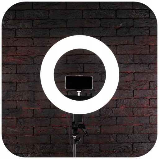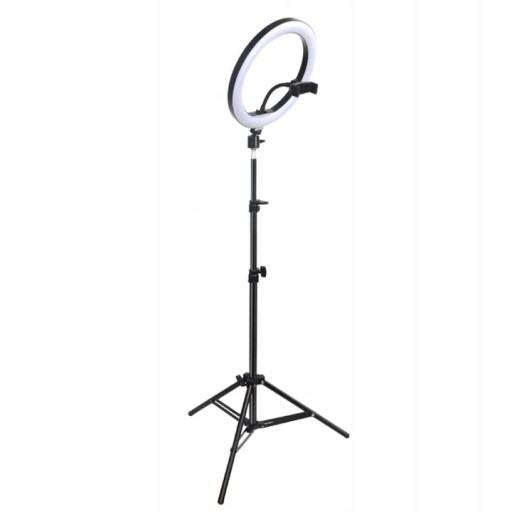 Lampa ma dużą moc aż 80W. Dzięki temu wybrane miejsce będzie idealnie oświetlone i nie musisz martwić się, że lampa nie spełni swojego zadania. Ring o średnicy 30,5cm umieszczony jest na statywie, który można regulować do wysokości 220cm. Uchwyt na telefon również jest regulowany, dlatego bez trudu dostosujesz całość według własnych potrzeb.