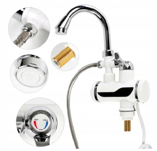 Dzięki funkcji obrotu 360° podgrzewacz jest niesamowicie komfortowy w użytku. Posiada również prosty system kontroli przepływu wody.