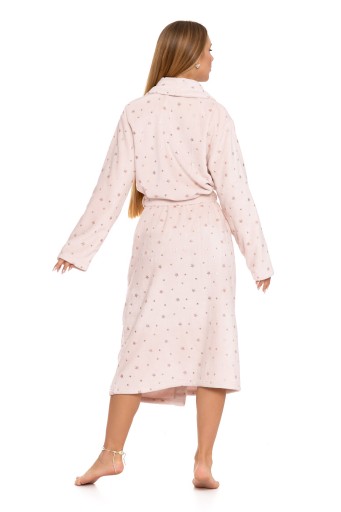 PUSZYSTY DŁUGI SZLAFROK DAMSKI W ZŁOTE GWIAZDKI WIĄZANY MORAJ M JASNY RÓŻ