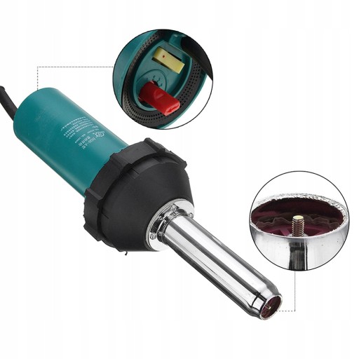 Dane techniczne: Napięcie: 230V Moc: 1080W±10% Częstotliwość: 50/60Hz Przepływ powietrza: 50-490L/min Temperatura: 50°C-580°C z dziewięcioma bezstopniowymi regulacjami temperatury Hałas: 65dB Rozmiar: 110x330mm Średnica uchwytu: 65 mm Długość przewodu zasilającego: 1,28 m