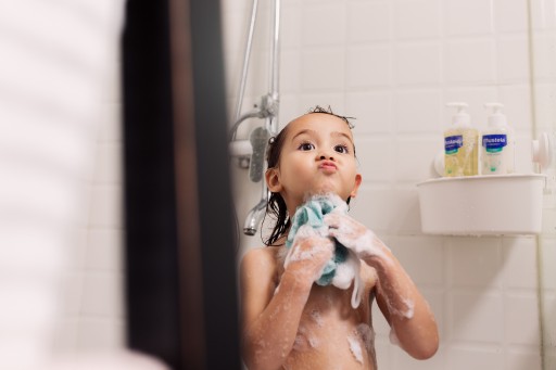 KROK 2: Rozprowadzić żel na skórze i włosach dziecka masując, w celu wytworzenia piany.
