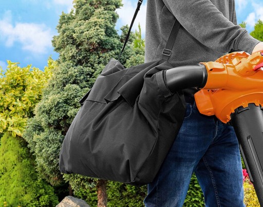 WYGODNY WOREK KTÓRY IDEALNIE SPRAWDZI SIĘ PODCZAS ODKURZANIA LIŚCI, DZIĘKI ZASTOSOWANIU ROZDRABNIACZA MOŻEMY POMIEŚCIĆ WIĘCEJ LIŚCI W WORKU