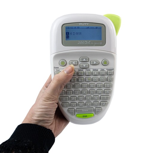 Ergonomiczna klawiatura alfanumeryczna MarkMate-200DK, z łatwo dostępnymi, alfabetycznie rozmieszczonymi klawiszami, umożliwia szybkie i wygodne wprowadzanie tekstu mającego znaleźć się na drukowanych naklejkach. Dodatkowo duży, jasny i podświetlany wyświetlacz LCD pozwala na łatwe sprawdzenie różnych ustawień, takich jak rozmiar czy styl czcionki.