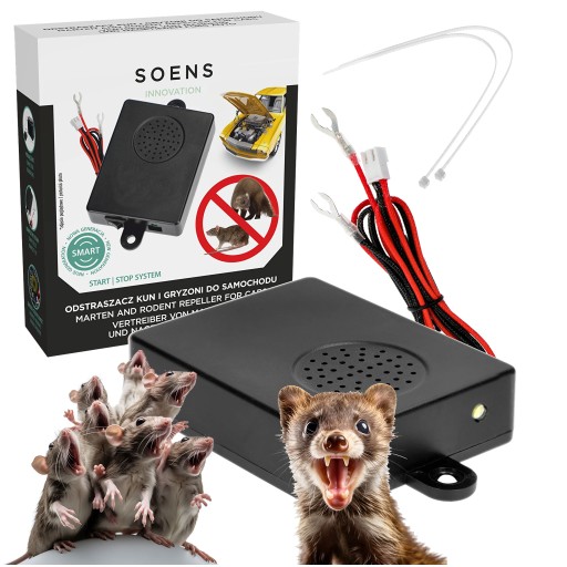 Szukasz skutecznego sposobu na odstraszenie od swojego pojazdu kun i gryzoni? Mamy dla Ciebie profesjonalne urządzenie, który pozwoli Ci uniknąć przykrych niespodzianek w postaci przegryzionych przewodów i innych uszkodzeń pod maską. Nie daj się unieruchomić, kiedy ruszasz w podróż czy do pracy - poznaj nowoczesny ultradźwiękowy odstraszacz i zamontuj go w swoim pojeździe. Kuny i drobne gryzonie będą się trzymać z dala od Twojego samochodu, motocykla czy ciągnika. Odstraszacz emituje sygnały ultradźwiękowe i błyski światła LED - odstrasza, nie czyniąc zwierzętom krzywdy.