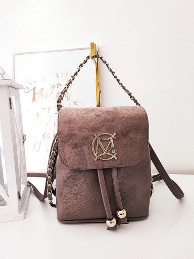 W komplecie torebka ma dwa doczepiane paski - nieodpinany pasek-łańcuszek służący jako rączka i długi, regulowany, odpinany pasek z ekoskóry, służący jako ramiączka plecaka lub długi pasek na ramię.