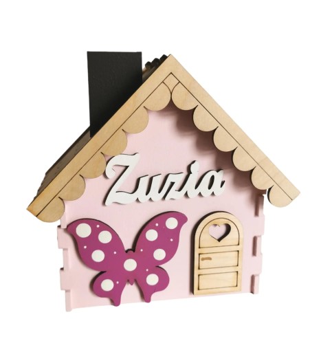 Ponadto każdy domek posiada spersonalizowany napis z imieniem dziecka oraz wybrany dekor.