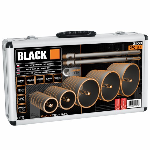 Otwornice do betonu SDS Plus i SDS Max zestaw 9el BLACK (21103)