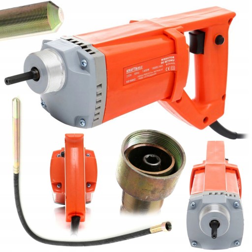 Profesjonalny wibrator do zagęszczania betonu marki Kraft&Dele o symbolu KD10842. Urządzenie pozwala wyeliminować pęcherzyki powietrza z betonu, jednocześnie zwiększając gęstość i trwałość masy betonowej.