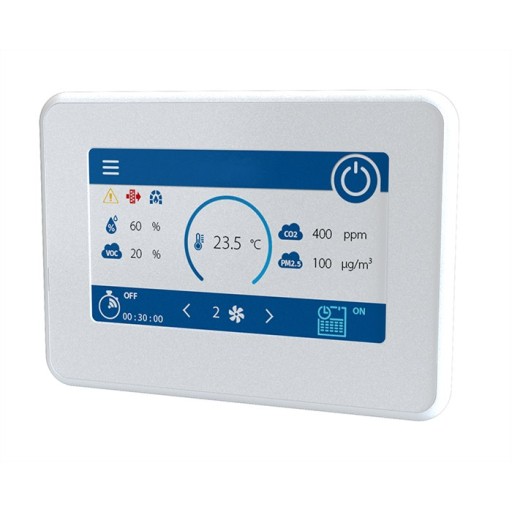 Panel sterowania A25 z ekranem dotykowym jest używany do sterowania przemysłowymi i domowymi centralami nawiewno-wywiewnymi wyposażonymi w system automatyki A21.