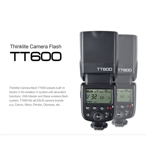 TT600Lampa błyskowa TT600 Thinklite pomoże Ci stworzyć wszechstronną i efektywną konfigurację oświetlenia. Nadaje się zarówno jako lampa na sanki aparatu lub zewnętrzne źródło światła umieszczone np. na statywie. Jest niekwestionowanym liderem jeśli chodzi o mocny błysk przy relatywnie niskiej cenie. Z racji braku trybu TTL jest polecana dla osób, które preferują manualną kontrolę nad siłą błysku.