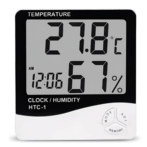 ✅ Aktualna wilgotność (oraz minimalna i maksymalna po naciśnięciu MEMORY).