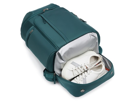 Plecak posiada specjalną komorę na buty. Dzięki niej można je łatwo odizolować od reszty ubrań. Jest to osobna komora zapinana na zamek.
