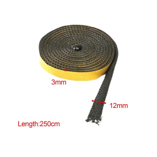 Piece Taśma uszczelkowa Płaska uszczelka z włókna szklanego Przewód uszczelki do pieców okiennych drzwi 3 mm x 12 mm x 2,5 m