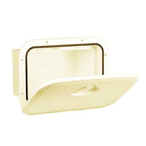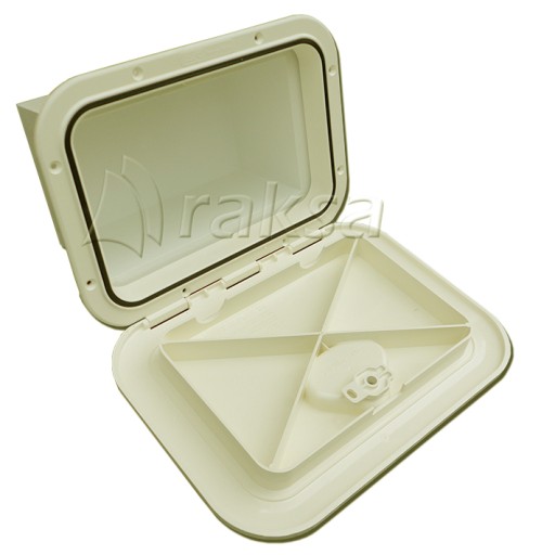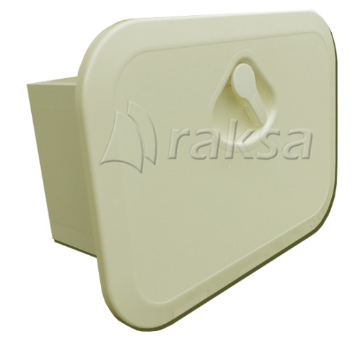 Zamknięcie - schowek wykonany z PCV w kolorze kremowym. Posiada możliwość zamontowania zamka na klucz (symbol 10310).