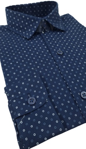 Koszula posiada delikatny wzorek, co dodaje jej uniwersalnego charakteru, pasującego do wielu stylizacji i kolorów. Posiada klasyczny kołnierz, który sprawia, że koszula wygląda bardziej formalnie i elegancko. Rozpinana na guziki, umożliwia łatwe i szybkie ubieranie oraz zdejmowanie koszuli.