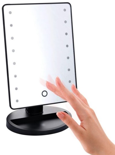 Podświetlane lusterko z 16 diodami LED uruchamianymi dotykowym przyciskiem na lusterku.
