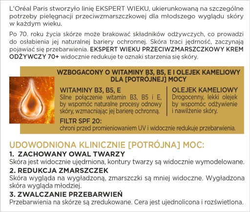 - Loreal Ekspert Wieku 70+ przeciwzmarszczkowy krem odżywczy na dzień z SPF20, 50ml