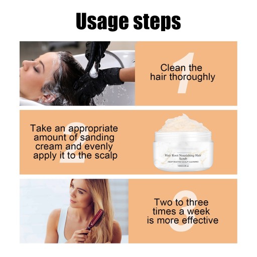 1. NAWILŻANIE WŁOSÓW: Peeling oczyszczający skórę głowy nawilża suche włosy i oczyszcza skórę głowy, zapewniając zdrowsze i bardziej lśniące włosy.