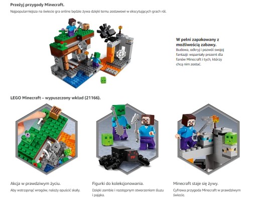 LEGO MINECRAFT OPUSZCZONA KOPALNIA PAJĄK MAINCRAFT KLOCKI NA PREZENT ZESTAW