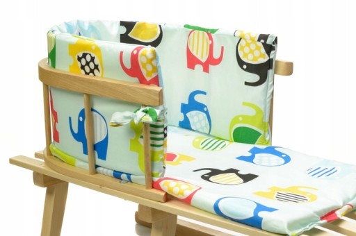 - Sanki posiadają bardzo wygodny materacyk na siedzisku i oparciu, który został wykonany z grubej 2 cm gąbki. Chroni dziecko przed zimnem i wiatrem. Materac można w każdej chwili zdjąć w celu wyczyszczenia.