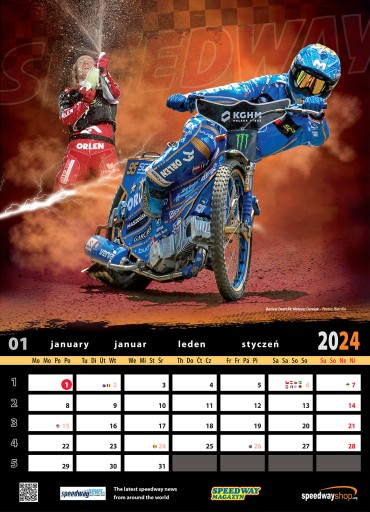 Na środkowych kartach, od stycznia po grudzień przewijają się zarówno mistrzowie, jak też zawodnicy dopiero walczący o wdarcie się do światowej czołówki: Kubera, Woźniak, Thomsen, Lebiedevs, Kuckenbeck, Bouin, Rew… Maj należy do czołowych zawodników długiego i trawiastego toru, natomiast grudzień do „gladiatorów” torów lodowych.