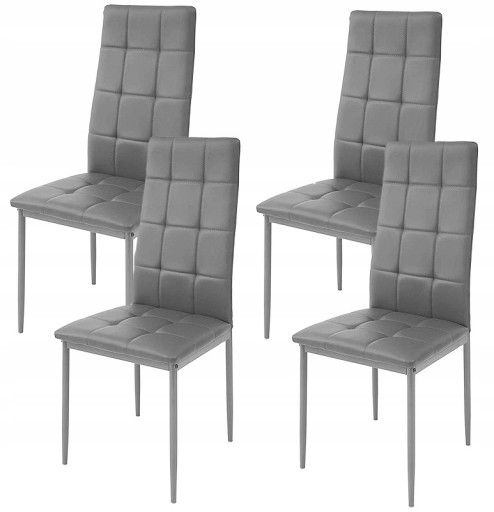 4x СОВРЕМЕННЫЕ СЕРЫЕ КОЖАНЫЕ КВАДРАТНЫЕ СТУЛЬЯ 258R