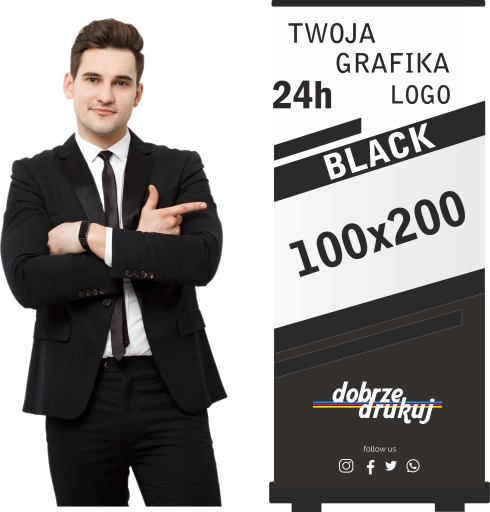 Roll-up ROLLUP 100x200 cm z wydrukiem - STANDARD BLACK