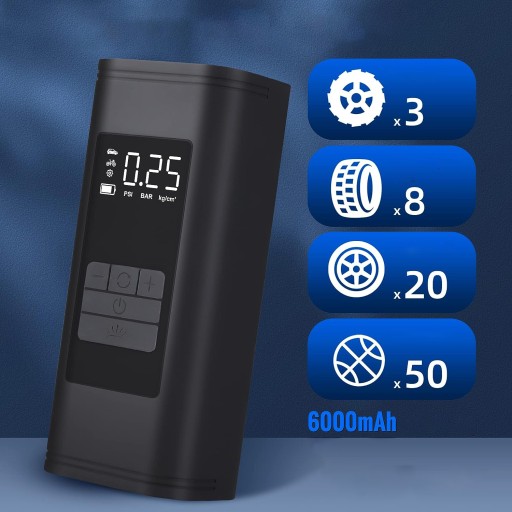 ☑️ Ta pompa powietrza wykorzystuje podwójne zasilanie, wbudowaną baterię litową 6000 mAh. W pełni radzi sobie z codziennymi potrzebami lub awariami.