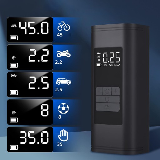 ☑️ Przenośna pompa powietrza jest ustawiona na 4 tryby pompowania dla roweru, motocykla, samochodu i piłki, które ograniczają standardowy zakres ciśnienia powietrza i skutecznie zapobiegają sytuacjom nadmiernego napompowania, aby zapewnić bezpieczeństwo.