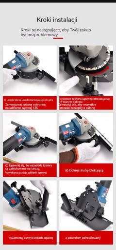 - Przystawka jest łatwa do zamontowania na zwykłej obudowie szlifierki kątowej 125 jak i 115