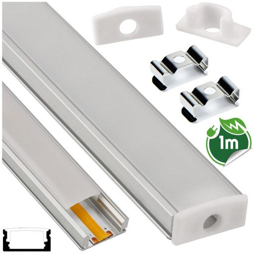 PROFIL LED Aluminiowy Anodowany 1m Wpuszczany / Natynkowy ZESTAW Estetyczny
