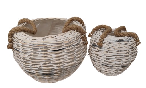 Ten zestaw zawiera 2 kosze wiklinowe z uchwytami o różnych rozmiarach – duży i mały.