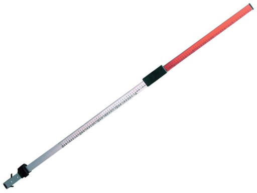 Stabilna łata pomiarowa z aluminium, z regulacją wysokości i wbudowaną libellą oczkową.