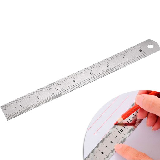 Dokładne i widoczne miary po obu stronach zostały wygrawerowane na czarno, dzięki czemu umożliwiają wykonanie dokładnych pomiarów i ich wygodny odczyt. Dodatkowo linijka posiada otwór umożliwiający jej zawieszenie.