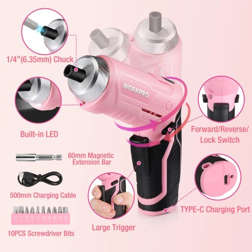 WORKPRO Набор инструментов розового цвета, 18 предметов и отвертка