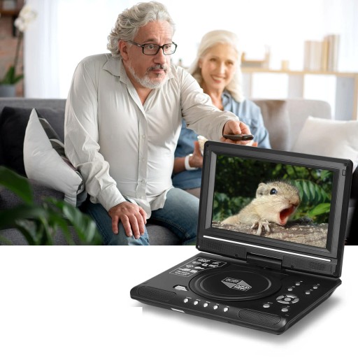 Obrotowy ekran HD -- Przenośny odtwarzacz DVD posiada 7,8-calowy obrotowy ekran HD 800*480 z funkcją ochrony oczu i obsługuje obrót o 270°. Dzieci i rodzice pokochają go podczas podróży.