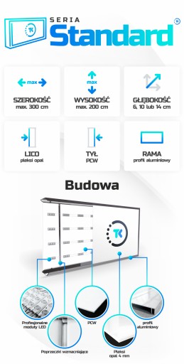 Nasze kasetony wyróżniają się nie tylko solidnością konstrukcji z aluminium, ale także prostotą montażu, co czyni je idealnym wyborem dla szerokiego grona odbiorców. Maksymalne wymiary kasetonów z serii STANDARD to 300x200 cm, co daje dużą swobodę.