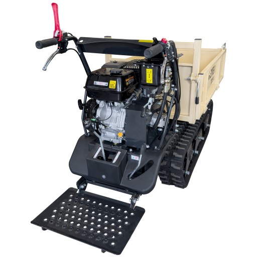 Miniwywrotka MEYER T800L to wszechstronne, napędzane benzyną wozidło gąsienicowe z hydrauliką wywrotu i platformą dla operatora.